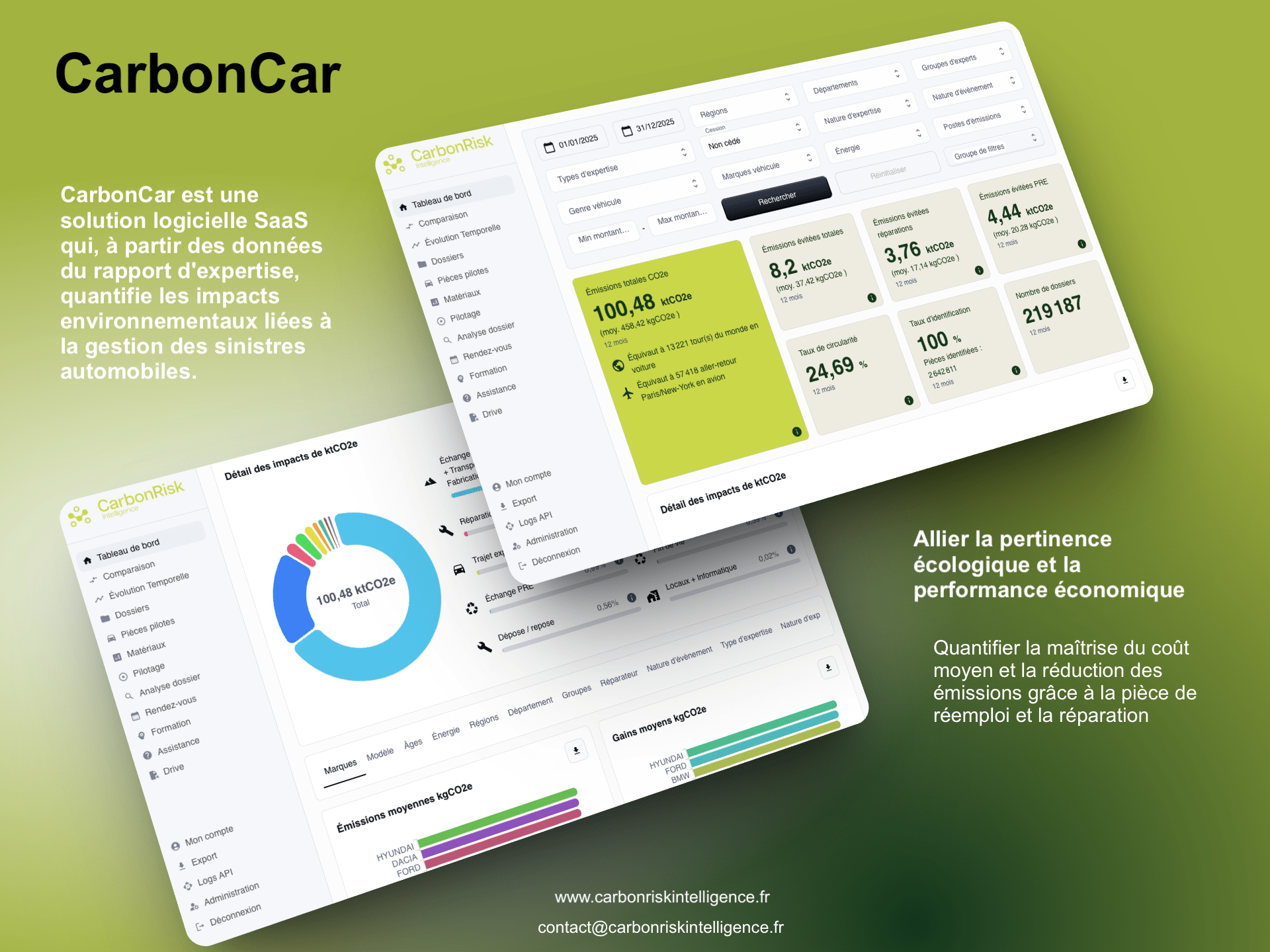 CarbonCar s’adresse aux professionnels de la réparation automobile, qu’ils soient réparateurs, experts ou assureurs. Cet outil permet de quantifier les émissions de gaz à effet de serre générées par chaque opération dans la gestion du sinistre en fonction des matériaux, des pièces et des méthodes utilisées. Grâce à une approche fine et rigoureuse, il aide à identifier les leviers de réduction et à valoriser les pratiques plus sobres, conciliant performance économique et responsabilité environnementale.