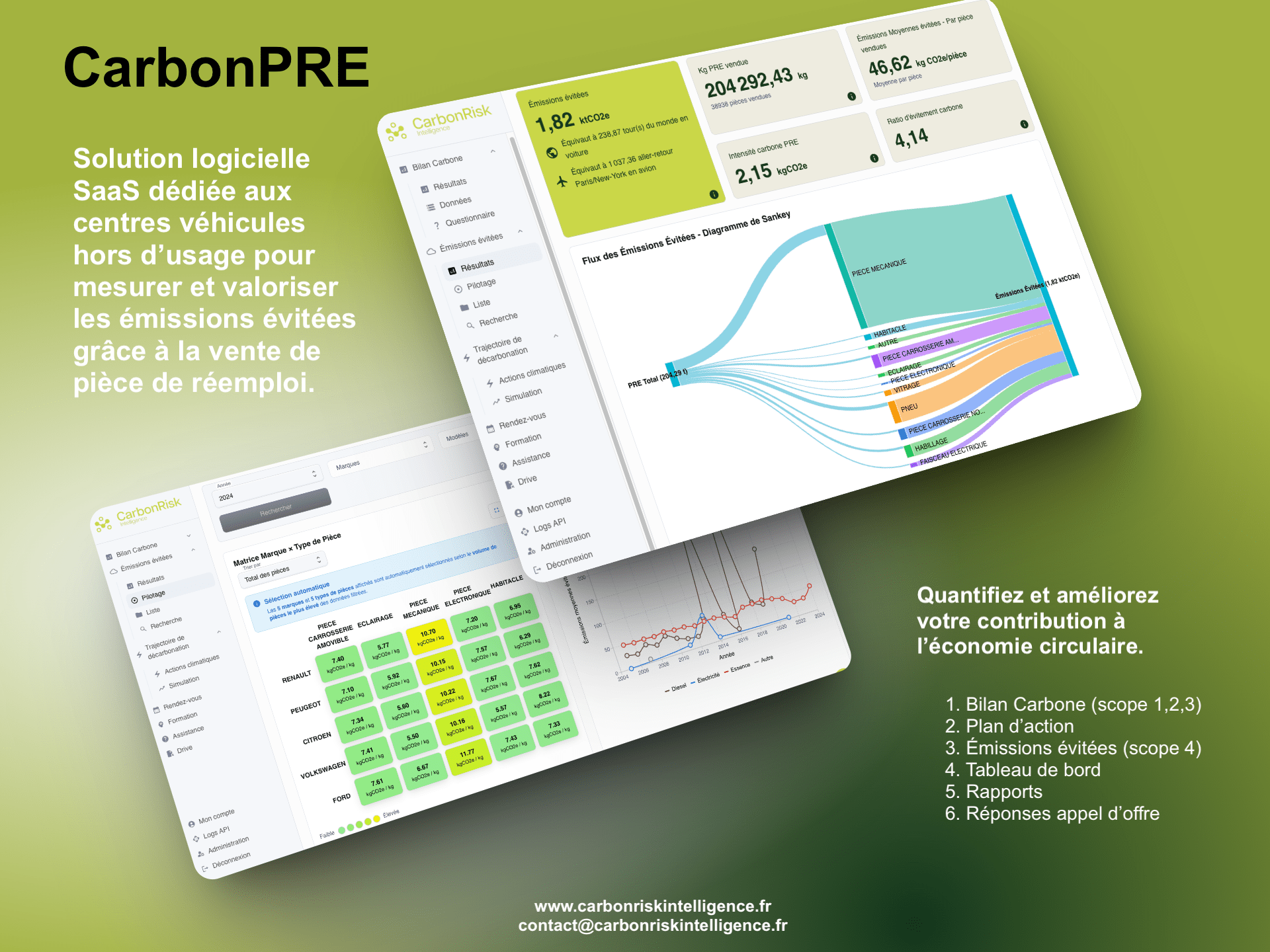 C’est dans ce cadre que CarbonRisk Intelligence participera à Equip Auto Paris 2025. Notre mission est d’accompagner la décarbonation du secteur de l’assurance, à commencer par les acteurs de la réparation et du réemploi vers des pratiques plus responsables et mesurables, en apportant des outils concrets pour piloter leur impact carbone. Nous aurons l’occasion de mettre en avant deux de nos solutions phares : CarbonCar et CarbonPRE.