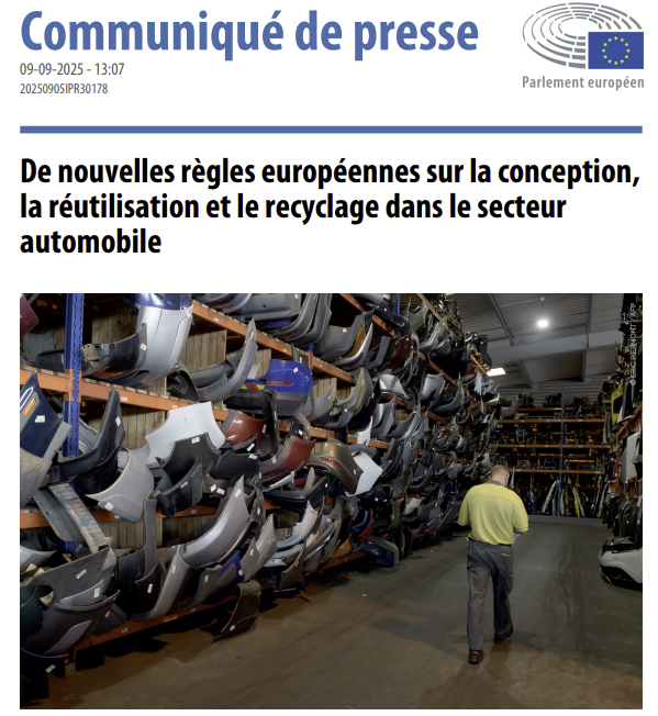 L'adoption par le Parlement européen des nouvelles règles d'économie circulaire automobile le 9 septembre 2025 marque une nouvelle étape pour l'industrie européenne du recyclage automobile. Adoptées par 431 députés contre 145, avec 76 abstentions, ces réglementations établissent un cadre ambitieux pour transformer l'ensemble du cycle de vie des véhicules, de leur conception à leur traitement final.
